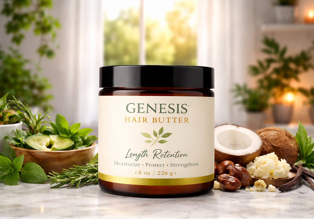 Experience the ultimate in hair care with Genesis Herbal Hair Butter a luxurious, creamy blend designed to nourish, protect, and strengthen every strand. Infused with the power of natural botanicals like amla, fenugreek, bhringraj, hibiscus, brahmi, nettle, and moringa, this rich butter seals in moisture, reduces breakage, and supports length retention.